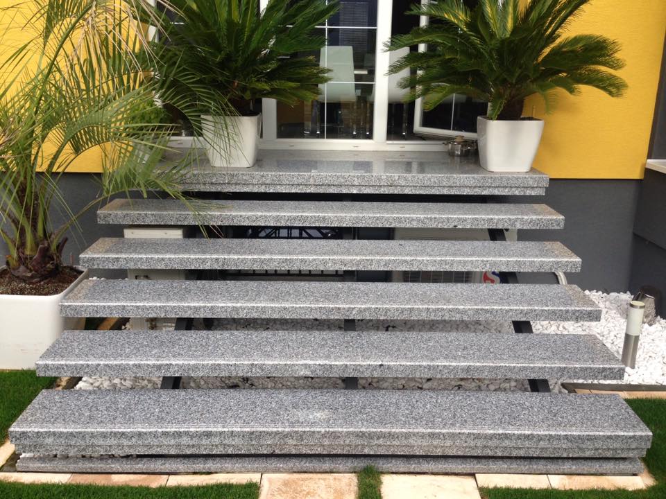 Exteriérové schody z přírodního kamene Rosa Beta.